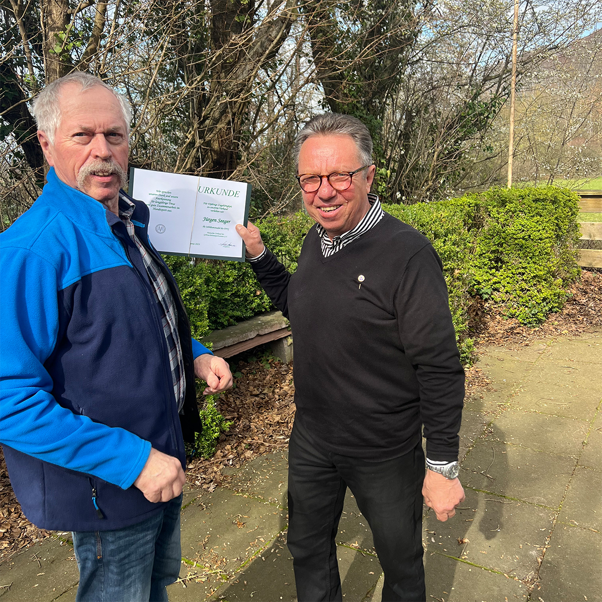 Jürgen Seeger, unser 1. Vorsitzender, bekommt die Jubiläumsnadel für 40 Jahre Mitgliedschaft im DVG überreicht.